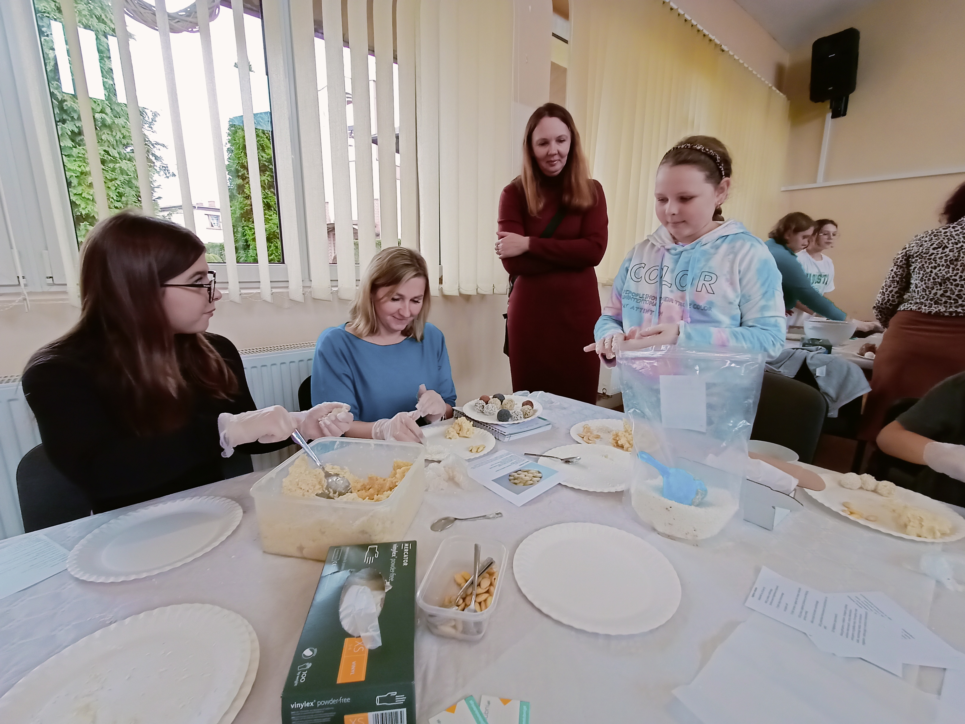 Po wykładzie przeszliśmy do działania i każdy mógł przygotować przepyszne zdrowe słodkości- kulki mocy, jaglane rafaello oraz zdrową nutellę a wszystko na bazie bakali, kasz, płatków owsianych… mówimy Wam- same pyszności.