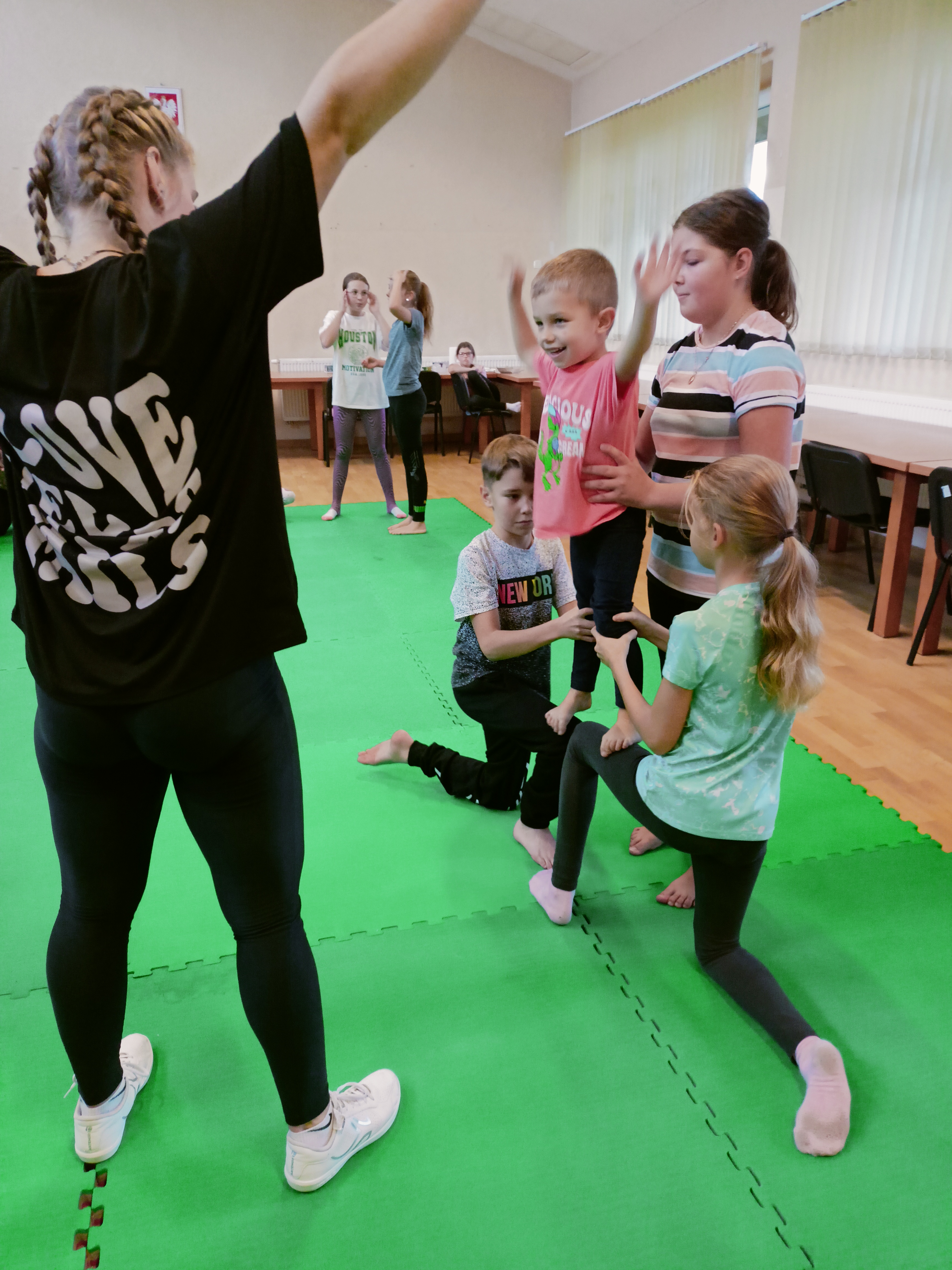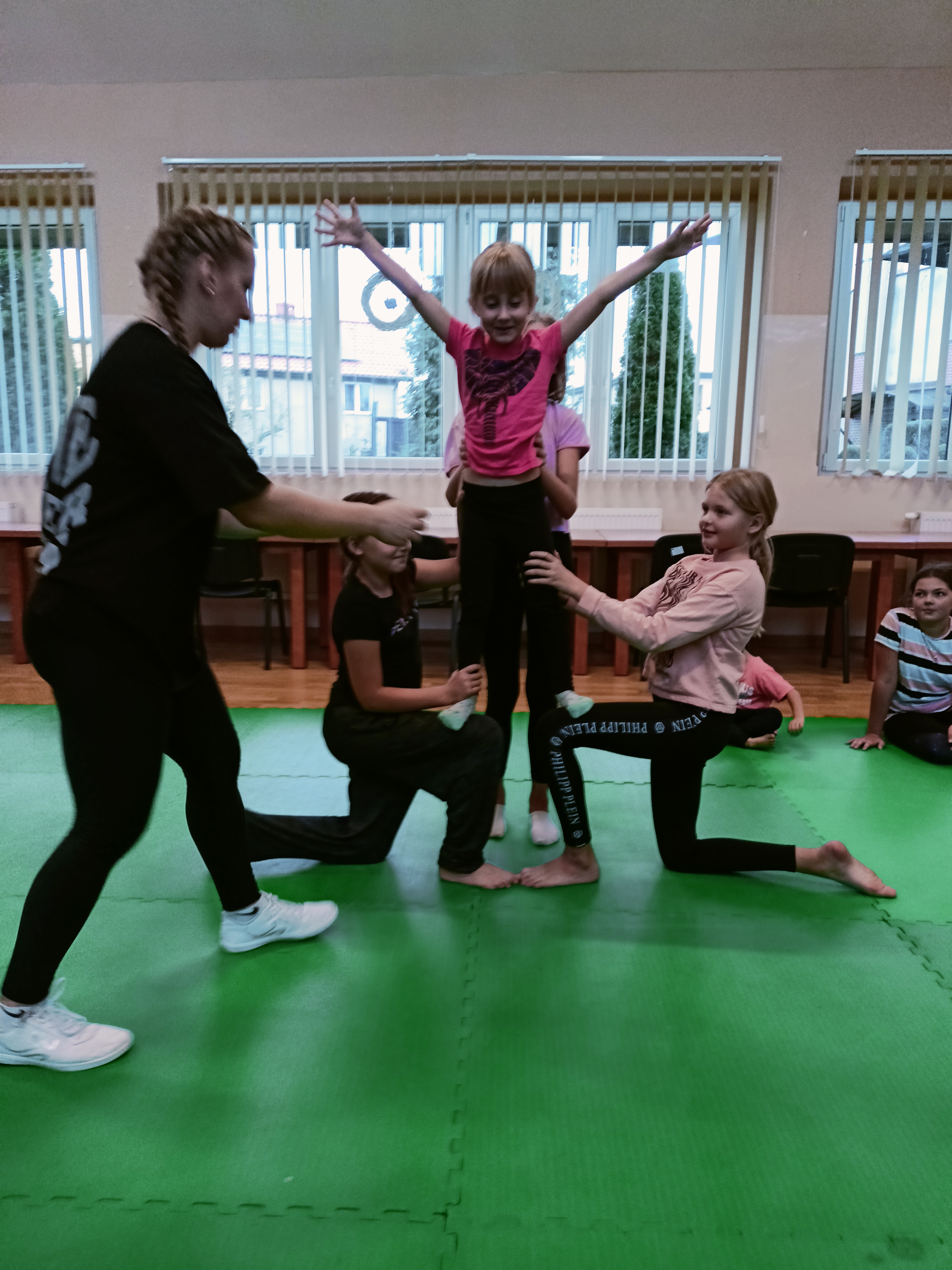 Miriam Lachowicz z Akademii tańca Perfect wprowadziła najmłodszych w świat akrobatyki i na koniec powstały piękne dziecięce piramdki, które zostały nagrodzone przez rodziców gromkimi brawami ️