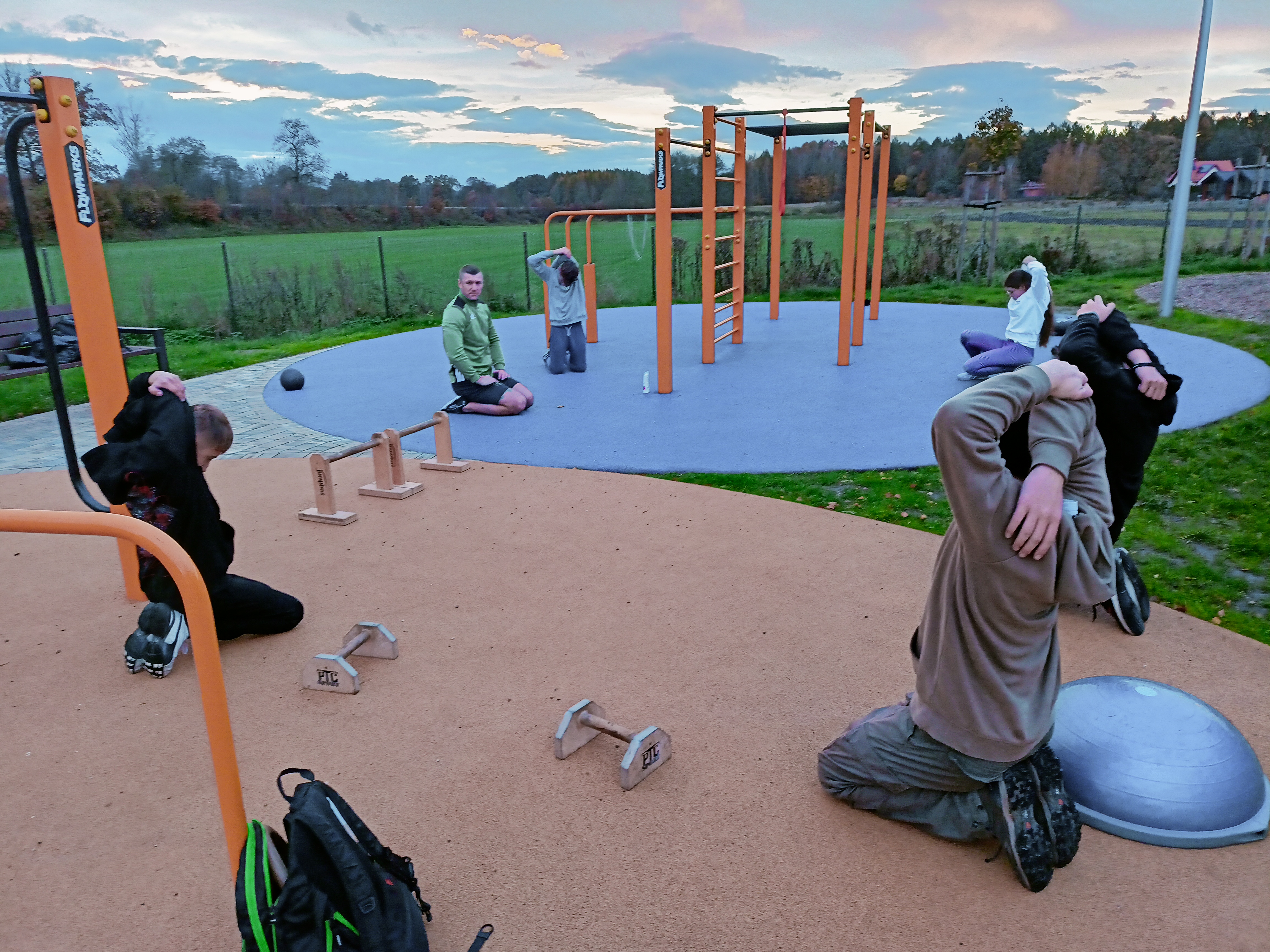 Popołudniu przejaśniło nam się niebo więc Waldemar Bastek zabrał młodzież na teren rekreacyjny przy Klubie Nieborowice.Trener przeprowadził trening siłowy i opowiedział w jakim stopniu nastolatkowie mogą trenować na siłowni , jak to robić bezpiecznie i z głową.